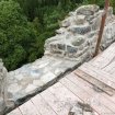 Byl zjištěn výrazný destrukční horizont s množstvím žlutavého jílu, který je možno spojovat s mazanicovou omazávkou svrchních, roubených či hrázděných partií věže. Je možno uvažovat o tom, že šlo o podsebití či obranné polopatro. Mladší destrukční horizonty tvořené převážně velkými lomovými kameny s maltovinou již odpovídaly následnému přirozenému rozpadu věže.