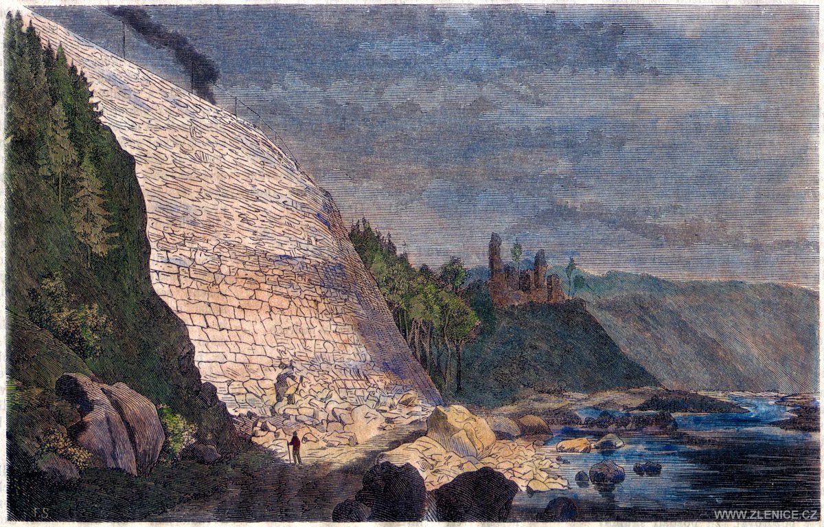 V roce 1832 či 1833 si do svého Černého sešitu Zlenice nakreslil i K. H. Mácha, B. Mráz (1988, 213) však tuto kresbu chybně interpretoval jako vyobrazení hradu Zbořený Kostelec. Hradní jádro Máchova kresba zachycuje v pohledu z hrany předhradí nad řekou. Zcela vpravo stojí ještě zhruba polovina objemu okrouhlé patrně studniční věže, jejíž zdivo směrem k řece tvoří převis. Zachyceno je torzo prvé brány jádra s tím, že jeho vztah navazujícím hradbám je mírně zkreslen. Zřejmě ještě existuje část čelní zdi vlčí jámy. Hradební úsek nalevo od branské věže korunuje zubovitý fragment zdiva. Za branskou věží vyčnívá ze zeleně torzo velké věže, které má zjevně ještě dochovánu část zdiva čelní strany a značný je i rozsah a výška dochované stěny nádvorní. V interiéru je zachycen pouze malý otvor v předposlední úrovni a koruna nejdochovanější stěny působí dojmem, jako by ji završovaly pouze dva zubovité útvary. Na mapě Druhého vojenského mapování, které bylo s použitím vojenské triangulace z let 1806–1811 a z ní vycházejících katastrálních map vzniklých v letech 1824–1843 provedeno v letech 1840–1852, je situace hradu ve srovnání s prvním vojenským mapováním zachycena podstatně realističtěji, i když i zde se vyskytuje určité zkreslení. Hradní areál je zde zakreslen poněkud „zlomený“, tedy předhradí a jádro nejsou na jedné přímce jako ve skutečnosti. Jádro je vyznačeno jako nepravidelná červená skvrna popsaná Ruine Hláska. Z příkopů je zachycen pouze nejmohutnější zadní. Za řekou stojí stále pouze čtverhranný dvůr. Ani zachycení hradu na mapě Druhého vojenského mapování k jeho poznání příliš nepřispívá.